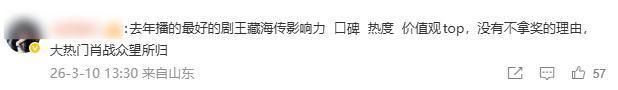 网上也有不少观众说出了自己的心声,有人说“孙俪的蛮好的人生演到我心坎里了,这个视后必须有她一席之地”、“肖战藏海传的进步太明显了,终于被行业看到了,冲”。